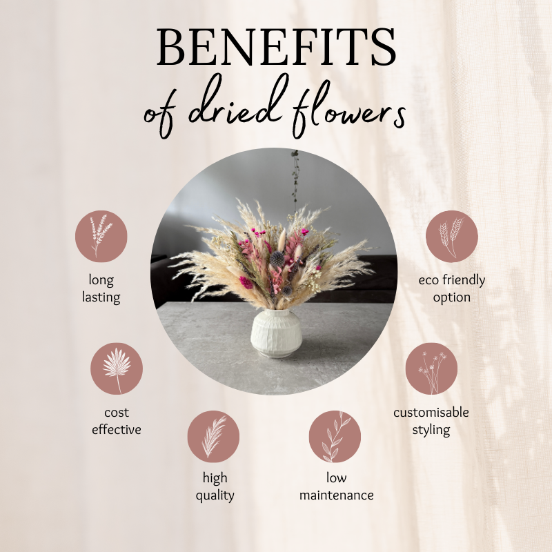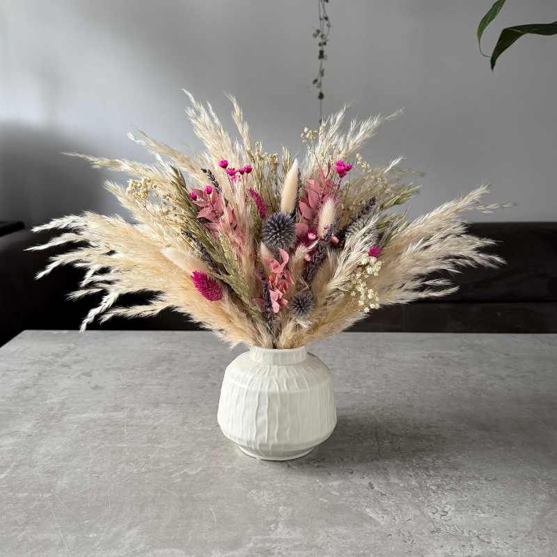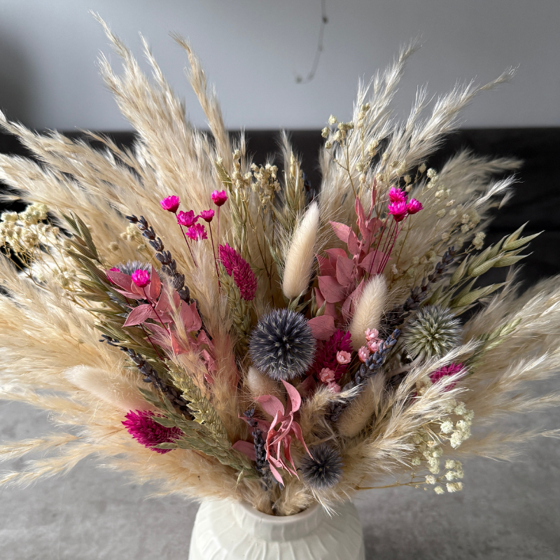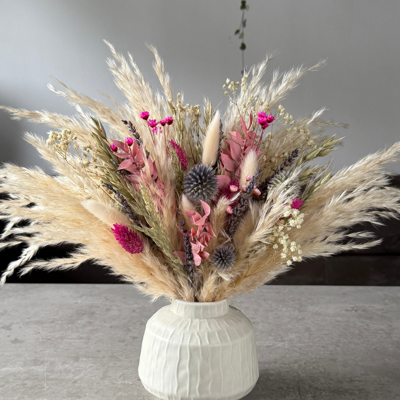 - Dried flowers and pampas last up to 3+ years; colours may fade over time.