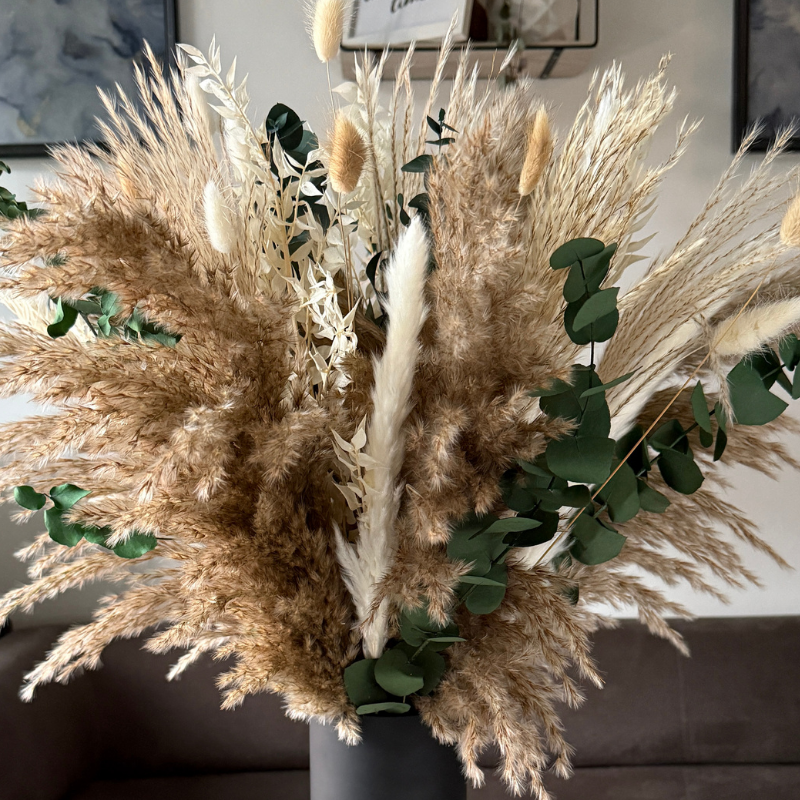 - Dried flowers and pampas last up to 3+ years; colours may fade over time.